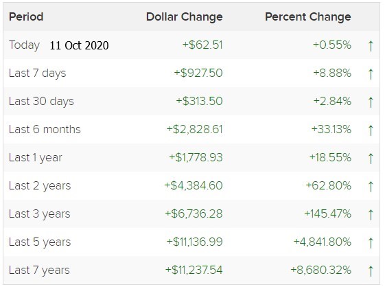 Update 10 December 2021 – below is the bitcoin price from 11 Oct 2020. Now to all of those who are complaining that the Bitcoin price is not moving too well, well just go and check out the price right this minute. Now tell me really, is that not enough increase for 14 months? Yes, it could have been more, but dont forget, it could have been less also! Bitcoin will steadily rise, another 2-3 years and compare 11 Oct 2020 to 11 Oct 2021 or even today’s price, smile and be happy.